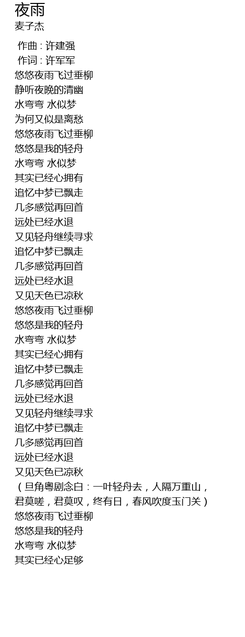 | [02:34.900] | 悠悠夜雨飞过垂柳 |