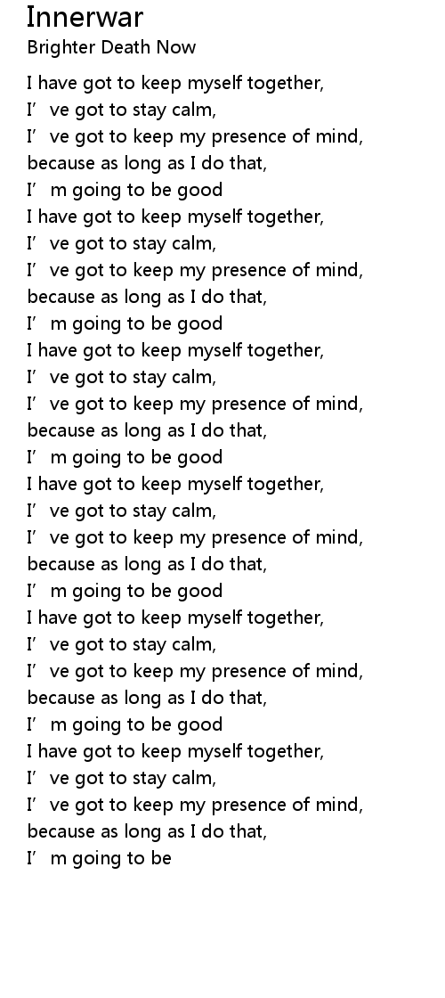 | [00:57.20] | I' ve got to keep my presence of mind, |