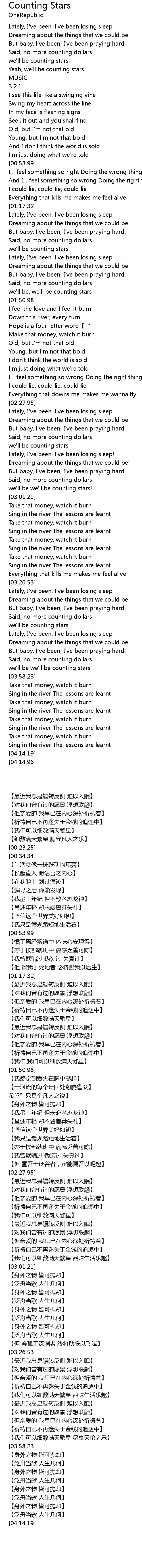 | [03:55.86] | we'll be we'll be counting stars |
