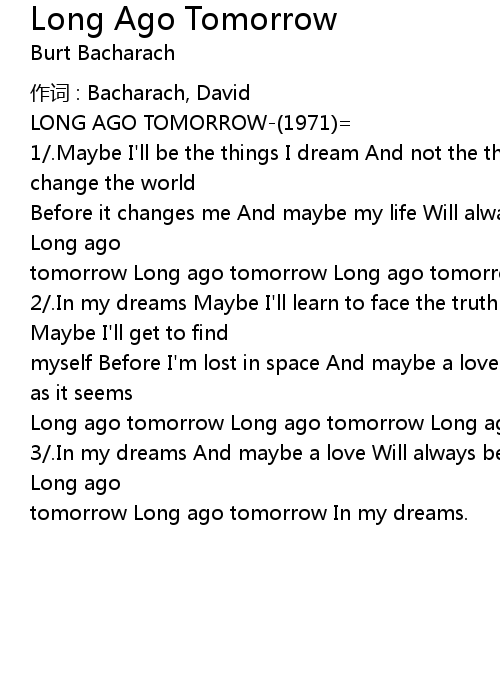 | 歌曲 | Long Ago Tomorrow |