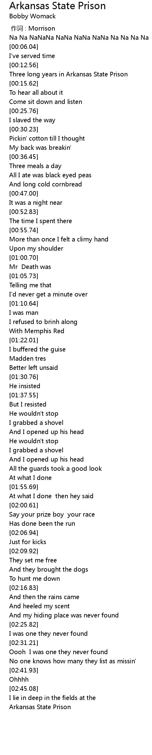 | [00:13.08] | Three long years in Arkansas State Prison |