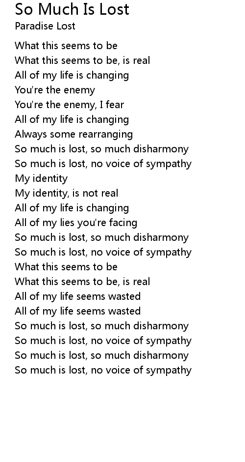 So much is lost, so much disharmony |