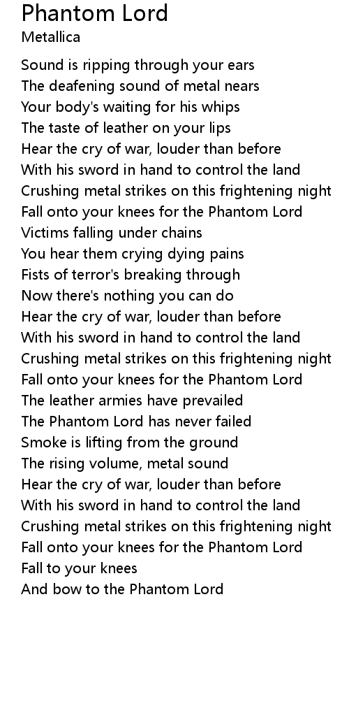 And bow to the Phantom Lord |