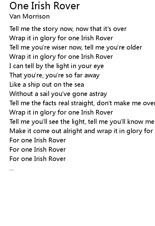 Make it come out alright and wrap it in glory for one Irish Rover |