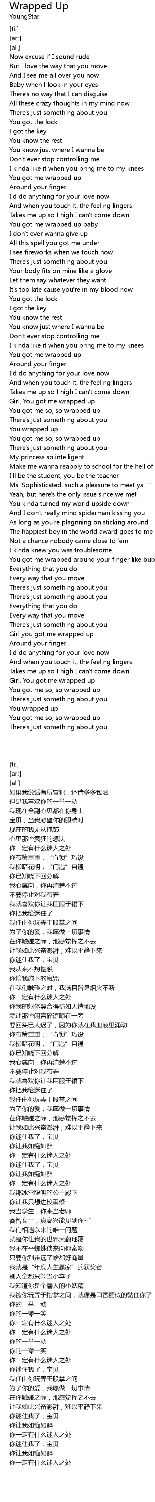 | [02:43.39] | Girl, You got me wrapped up |