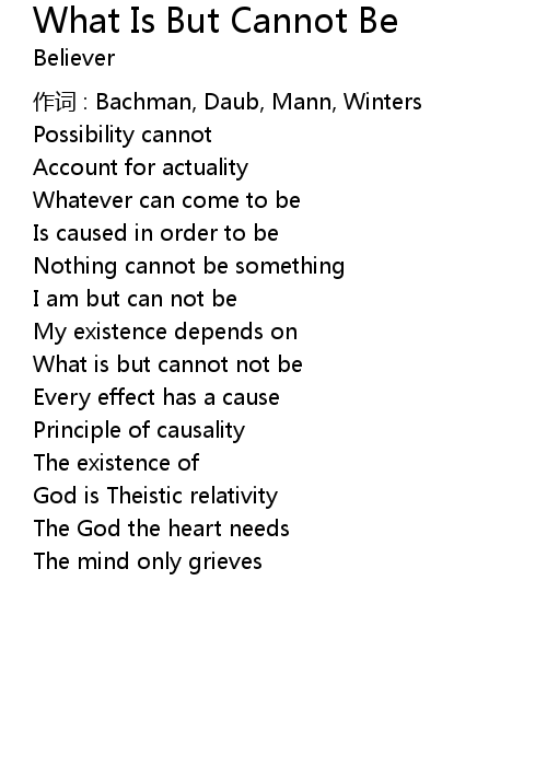 | 作词 : Bachman, Daub, Mann, Winters | |
