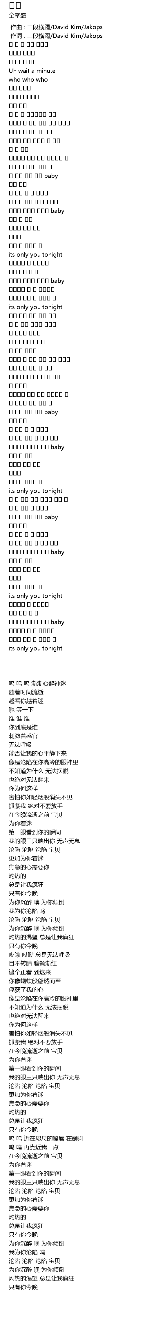 | [00:01.00] | 作词 : 二段横踢/David Kim/Jakops |