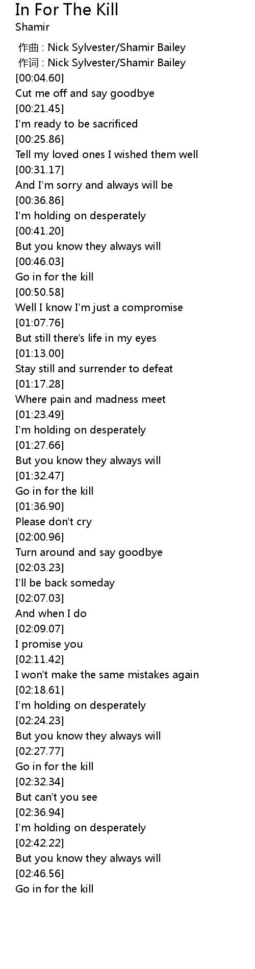 | [00:48.87] | Go in for the kill |