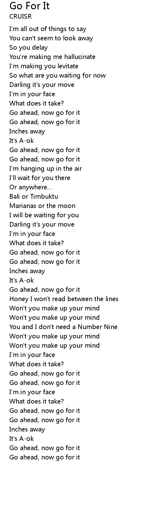| [03:00.049] | Go ahead, now go for it |