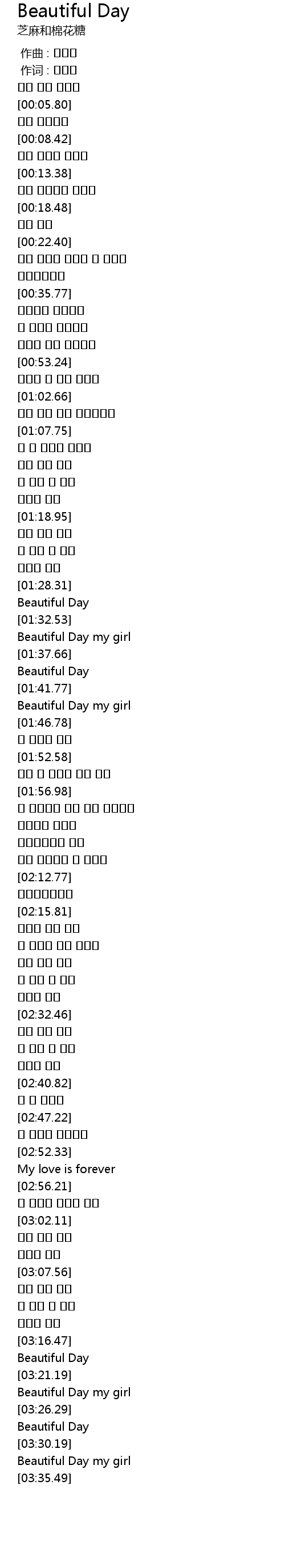 | [03:22.31] | Beautiful Day my girl |