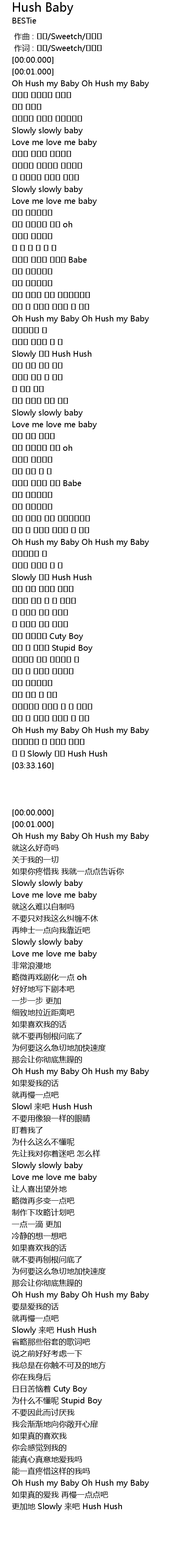 | [03:30.310] | 更加地 Slowly 来吧 Hush Hush |