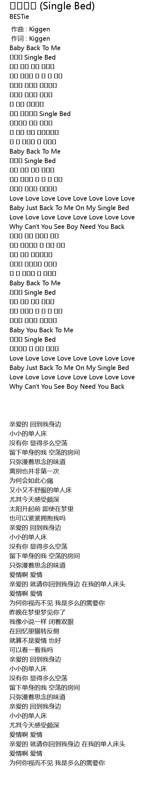 | [02:35.65] | Baby Just Back To Me On My Single Bed |