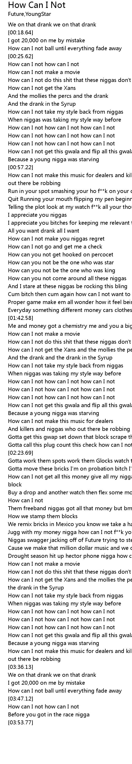 | [02:54.20] | Niggas swagger jacking off of Future trying to steal his spot |