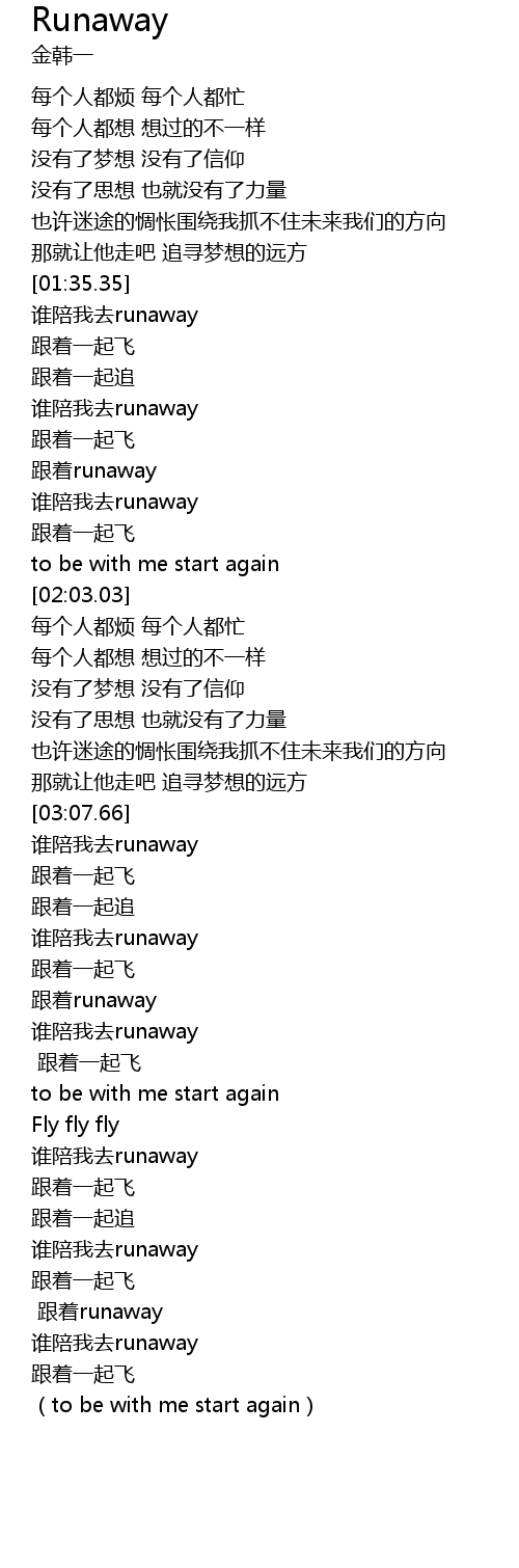 | [03:15.92] | shuí péi wǒ qù runaway |