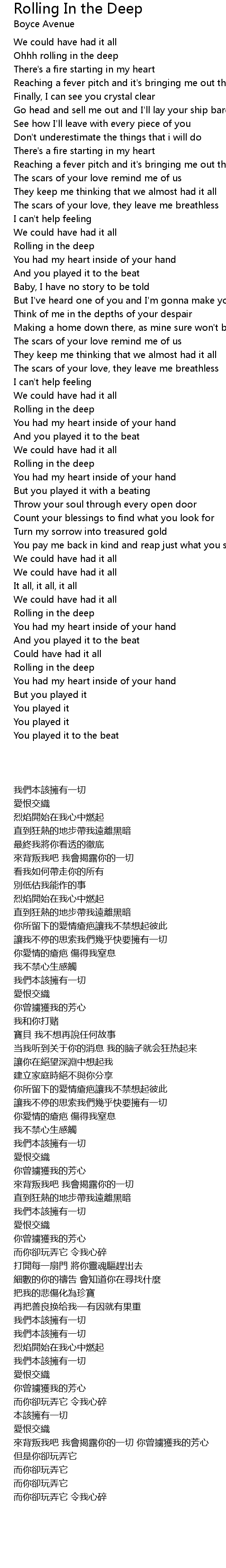 Ohhh rolling in the deep |