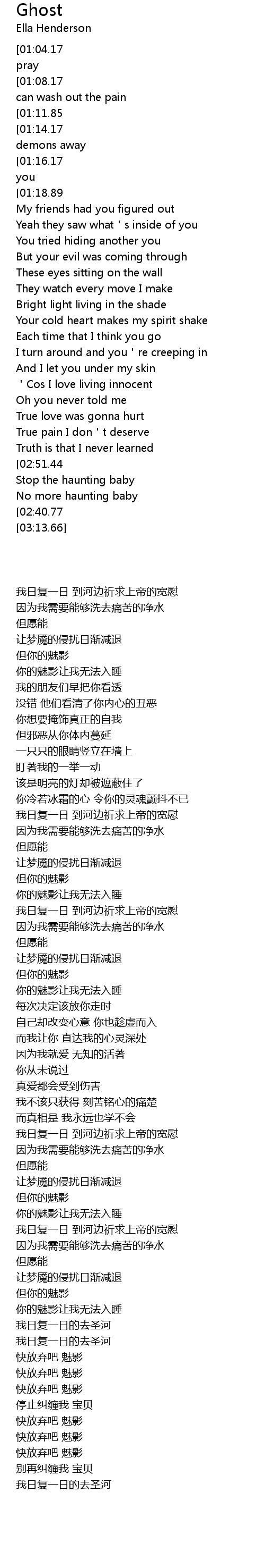 | [00:44.42][01:16.17][01:32.00][02:12.00][02:28.00] | But your ghost, the ghost of you |