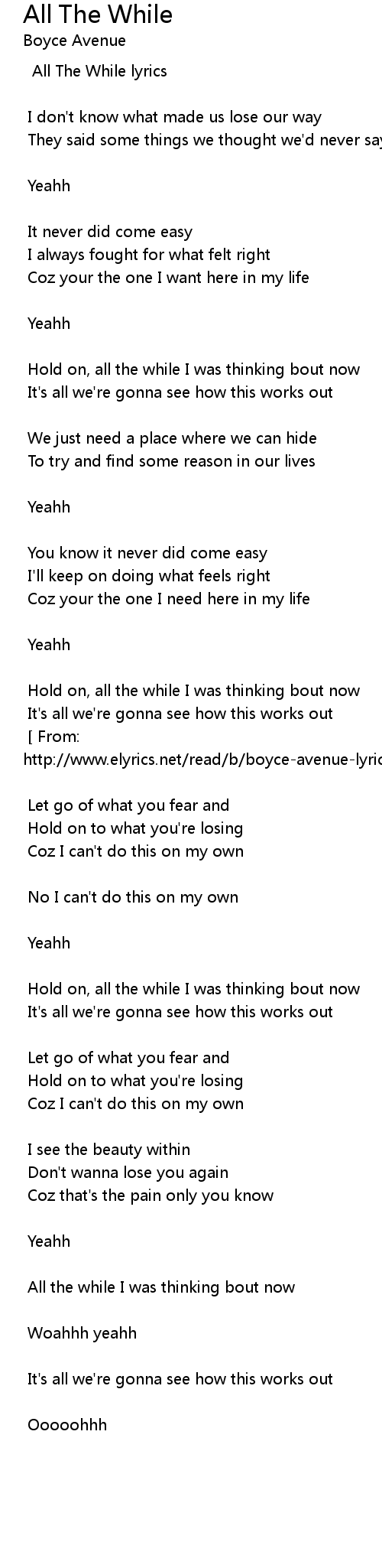 [ From: http://www.elyrics.net/read/b/boyce-avenue-lyrics/all-the-while-lyrics.html] |