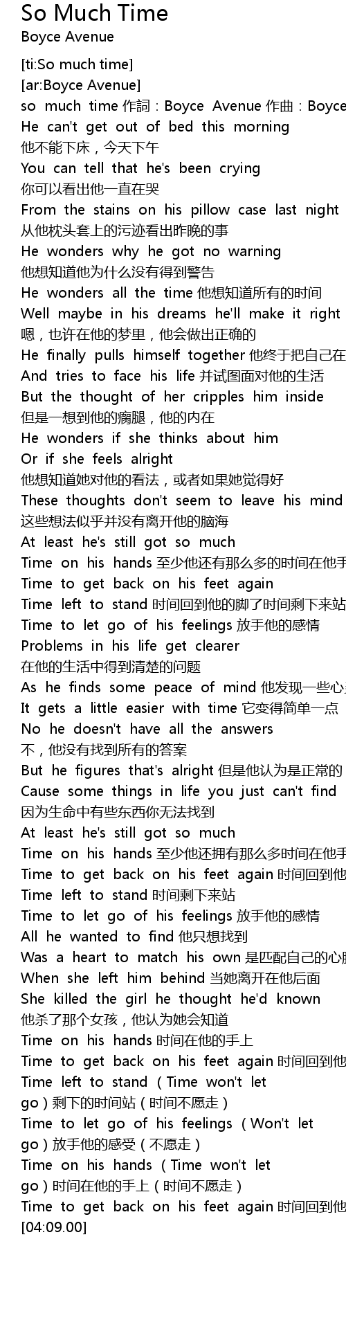 | [00:01.656] | so much time zuo ci: Boyce Avenue zuo qu: Boyce Avenue |