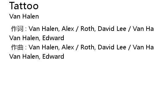 | [00:00.000] | 作曲 : Van Halen, Alex / Roth, David Lee / Van Halen, Wolfgang / Van Halen, Edward |