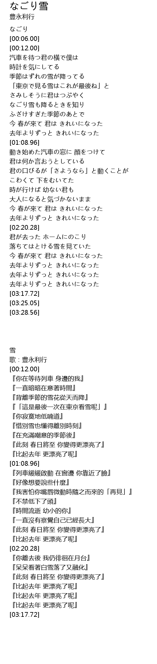 | [00:40.54] | 『惜別雪也懂得離別時刻』 |