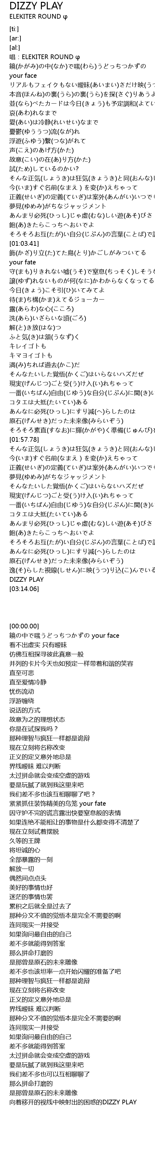 | [03:06.21] | yì shì xiàn yìng ru hù huò DIZZY PLAY |
