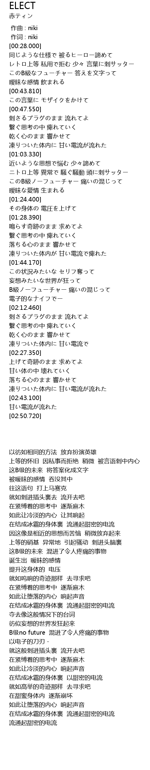 | [00:36.880] | このB級なフューチャー 答えを文字って |
