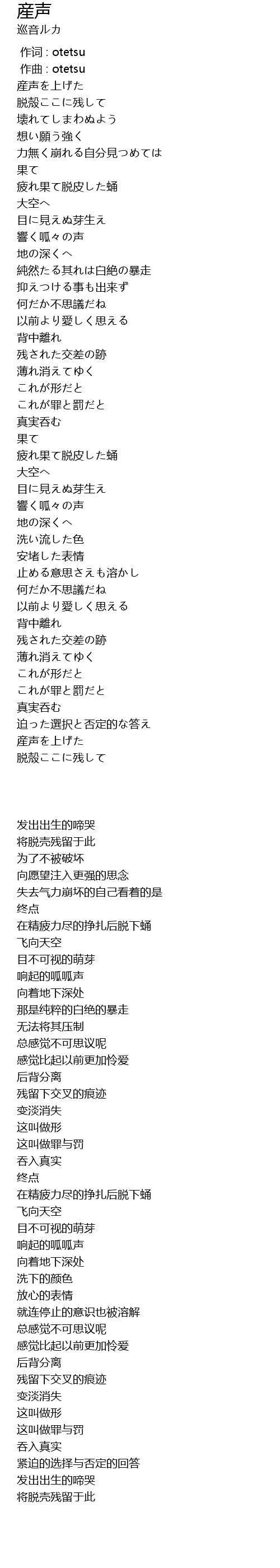 | [00:00.000] | 作词 : otetsu |