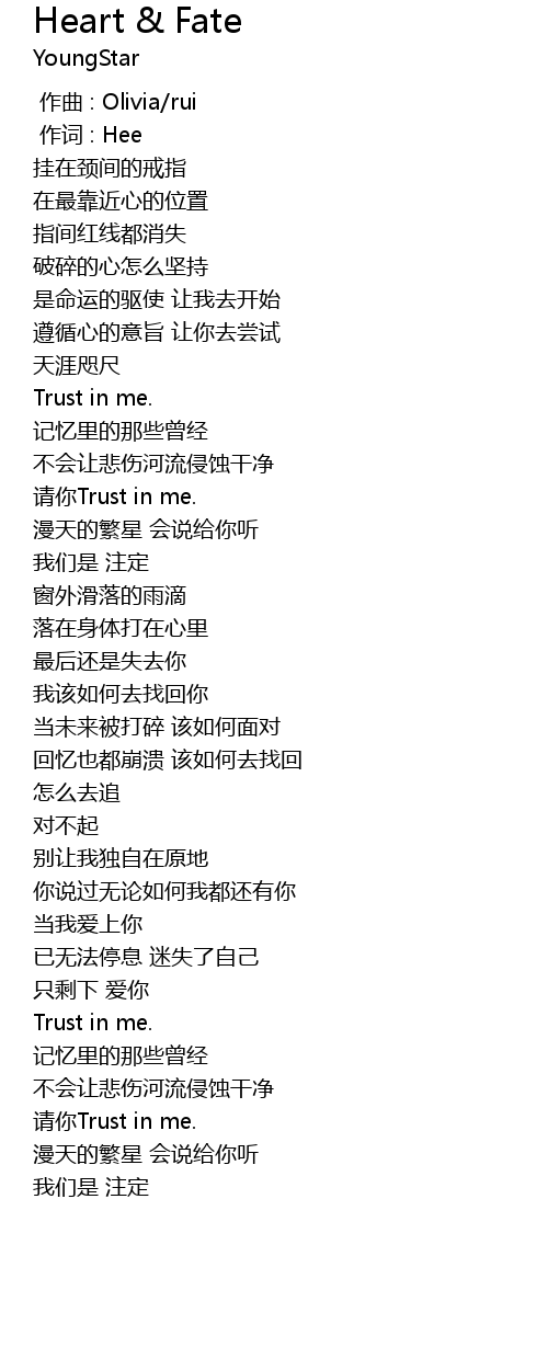 | 歌曲 | Heart & Fate |