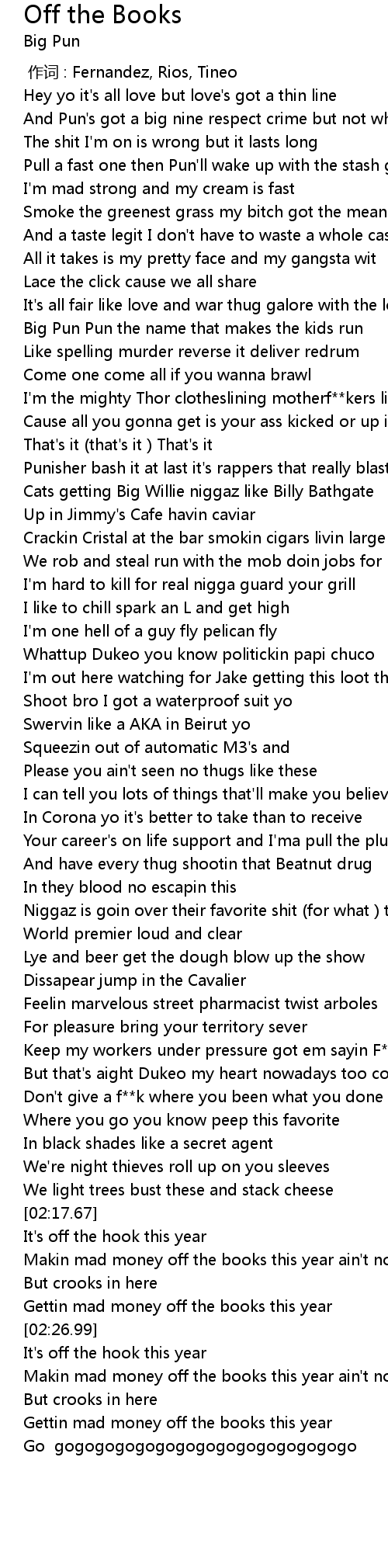 | [02:29.73] | Makin mad money off the books this year ain't nothin |