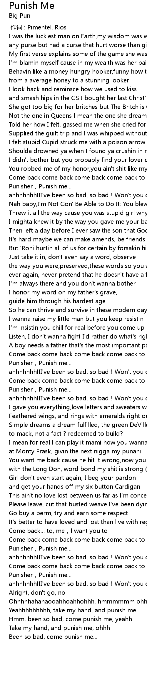 | [03:54.730] | Hmm, been so bad, come punish me, yeahh |