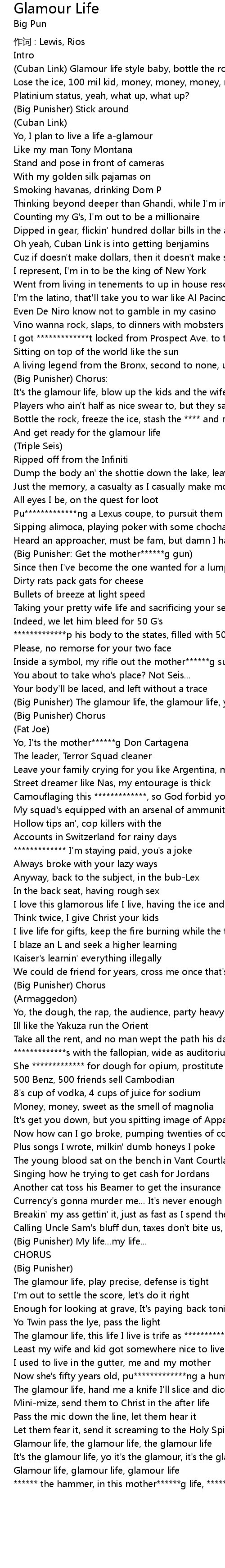 | The glamour life, this life I live is trife as *************t | |