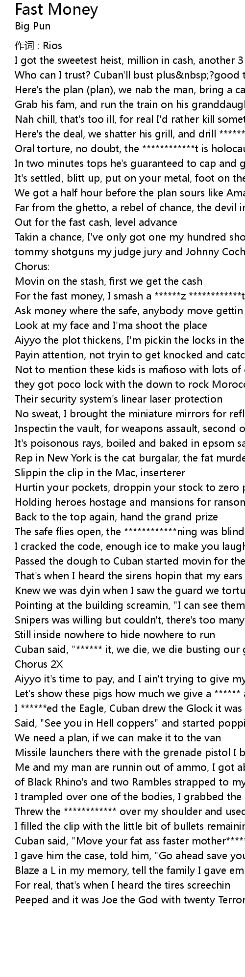 | For the fast money, I smash a ******z ************t like a crash dummy | |