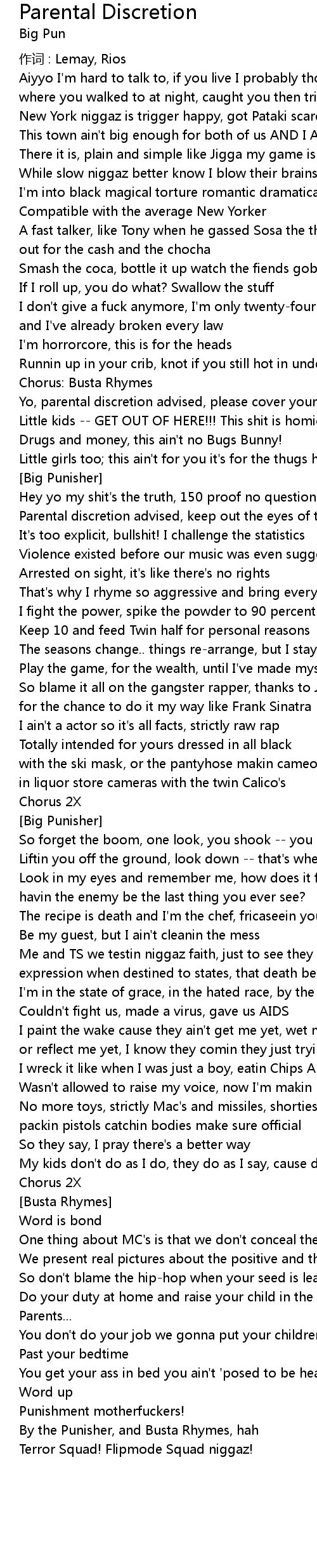 | 歌曲 | Parental Discretion |