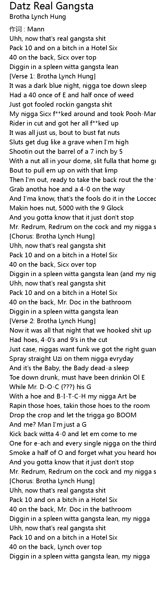 | Diggin in a spleen witta gangsta lean and my nigga say | |