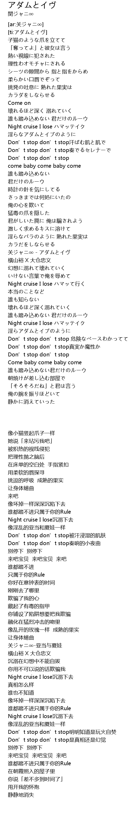 | [02:08.780] | 关ジャニ∞-亚当与夏娃 |