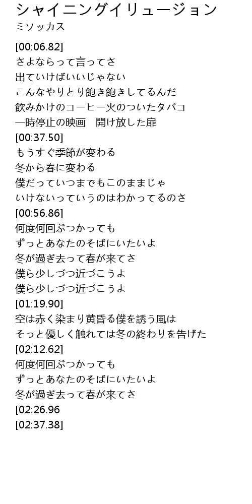 [02:04.06] そっと優しく触れては冬の終わりを告げた