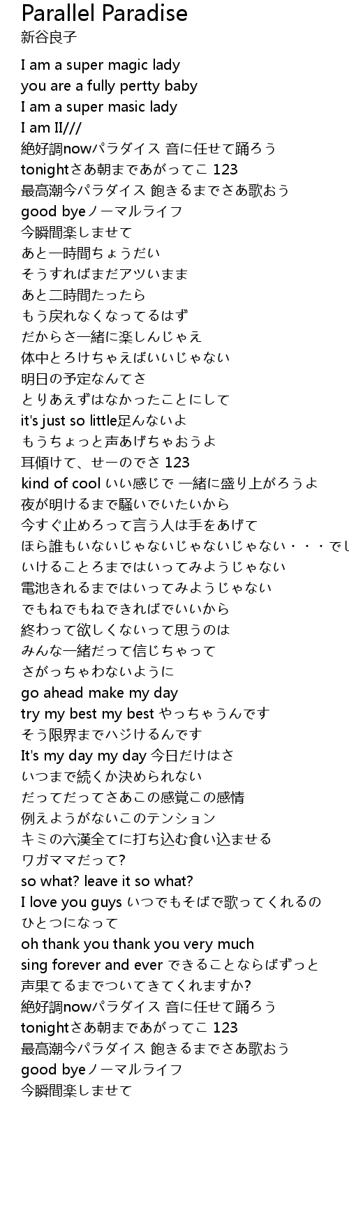 | 最高潮今パラダイス 飽きるまでさあ歌おう | |
