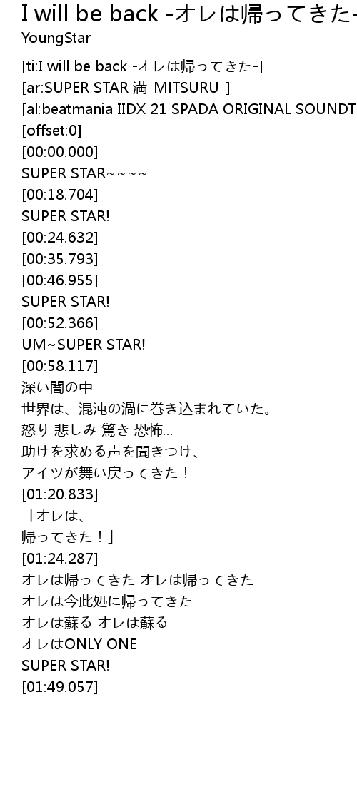 | [01:34.399] | オレは帰ってきた オレは帰ってきた |