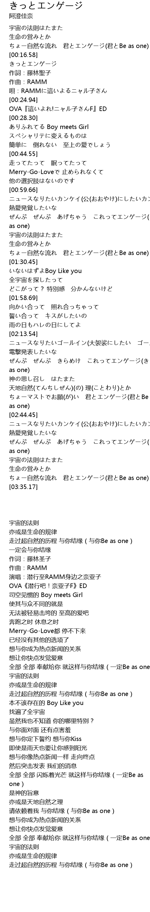 | [03:12.67] | 全部 全部 奉献给你 就这样与你结缘(一定Be as one) |