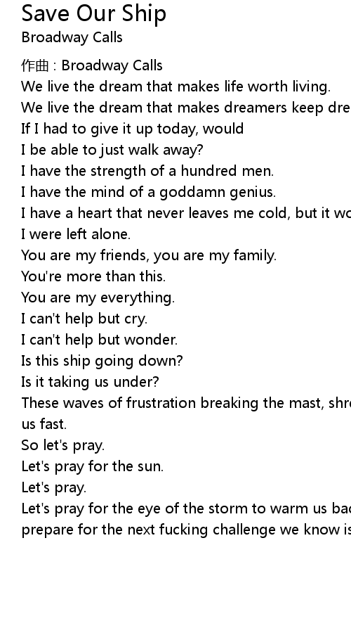 | These waves of frustration breaking the mast, shredding the sails and drowning us fast. | |