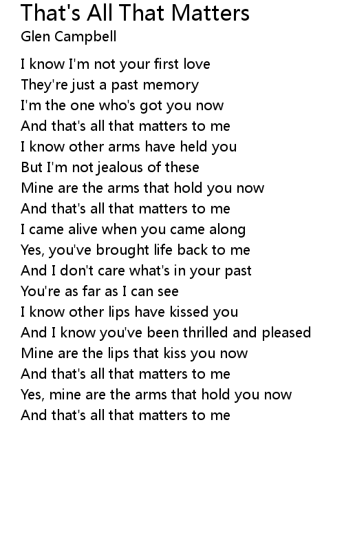And that's all that matters to me |