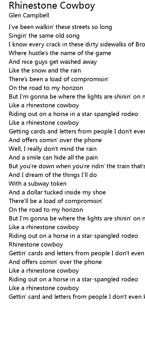 Like a rhinestone cowboy |