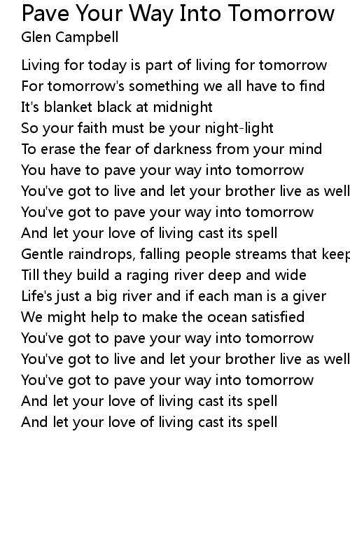 You've got to pave your way into tomorrow |