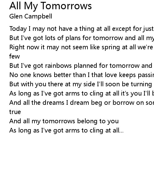 But I've got lots of plans for tomorrow and all my tomorrows belong to you |