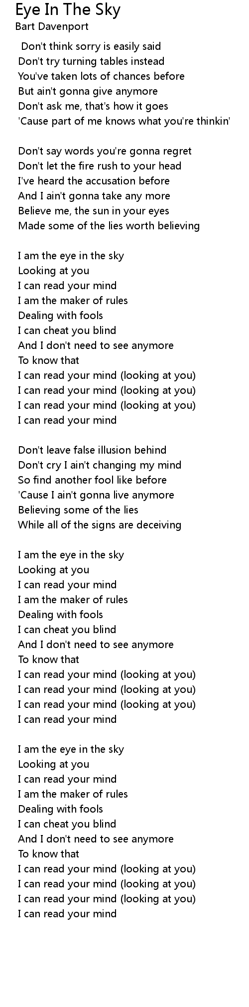 I am the eye in the sky |