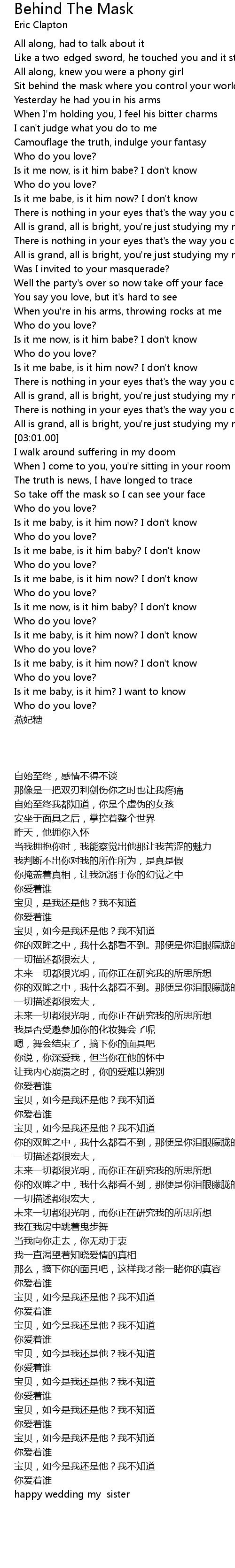 | [03:27.00] | 那么,摘下你的面具吧,这样我才能一睹你的真容 |