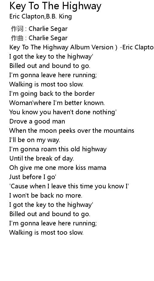| [00:00.260] | Key To The Highway Album Version Eric Clapton |