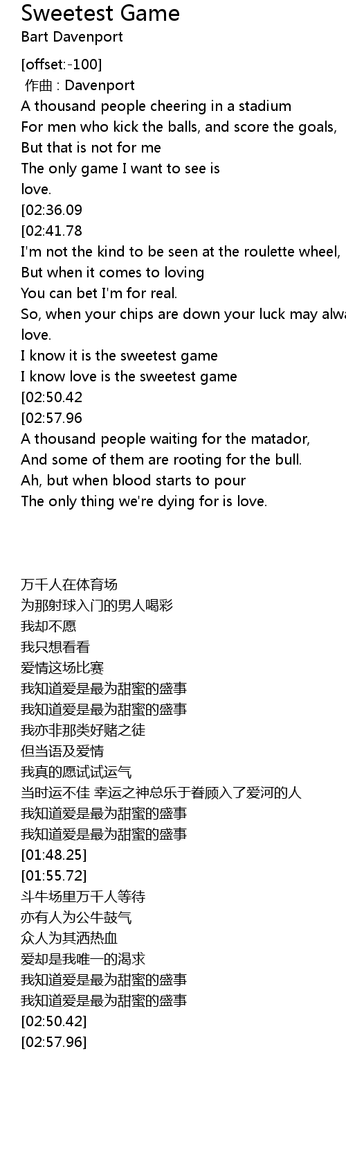 | [00:49.67][02:36.09] | I know it is the sweetest game. |