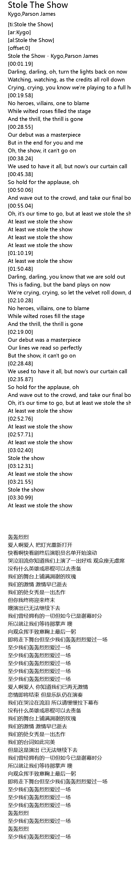 [ti:Stole the Show] |