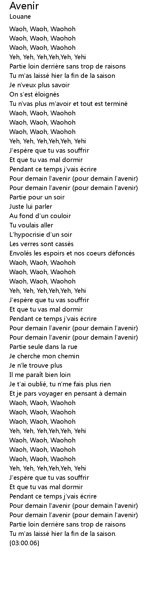 | [01:34.99] | Pour demain l'avenir (pour demain l'avenir) |